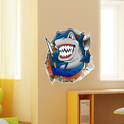 3dベビー子供ルーム漫画の鮫海洋海の壁デカールリムーバブルペーパーステッカーアートDIYギフトデコレーション取り外しと搭載されたdampproof、素敵なパッケージは、素敵なギフトの友人なのです。キュートなデザインで、ベビーに最適なキッズ用の部屋の飾りがあります。)