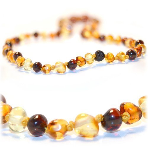 FTIR Lab Tested - Made of 100% Real Baltic Amber!;Relieves Teething Pain, Helps with Drooling, Reduces Fussiness - Happy Baby = Happy Mom!;Each Amber Bead is Safety Knotted - Designed to Keep Your Baby Safe!;Made for Toddlers, Children, and Newborns alike! Your little Boy or Girl is sure to look super stylish.;Not sure yet? We are so confident that you will LOVE your Amber Teething Necklace, that we offer a 100% money back guarantee. Chew on that. Or should I say... teeth on that!
