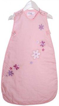 Our beautiful pink baby sleeping bag design;Featuring a selection of embroidered pink, white and lilac flowers in different shapes and sizes.;2.5 Tog baby sleeping bags are suitable for all year round, except peak summer temperatures. For use with room/nursery temperatures between 60?F and 70?F.;Material Composition : 100% cotton lining, 35% cotton/65% polyester outer, 100% polyester padding