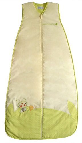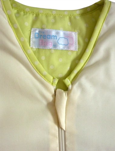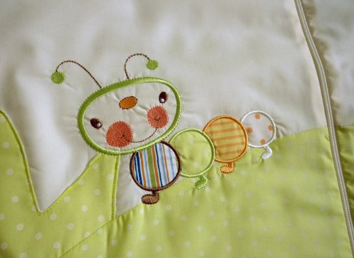 CATERPILLAR - A lovely new neutral design using a lovely muted colour palette from The Dream Bag;This cream baby sleeping bag features an embroidered colourful caterpillar.;The sleeping bag is trimmed with lime green polka dot material and the words 'Apple of mummy's eye' are embroidered on the chest of the bag, along with a nice green apple;This design is suitable for both little boys and girls.;The 3-6 year baby sleeping bag has a full length front zip (as shown) and is 51 inches in length.