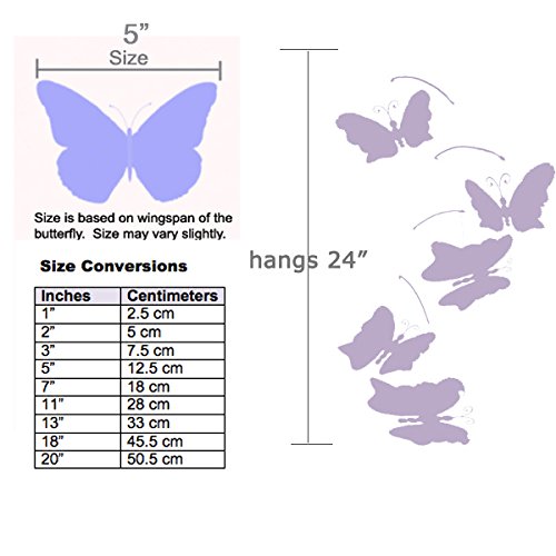 Made of nylon and wire with crystal cut beads for body and matching colored wire antennae;Mobile is made of Five butterflies with 5 wingspans;Hangs 24 from the ceiling;Double wing structure decorated with glitter and acrylic gems;Comes prestrung with clear line and hoop