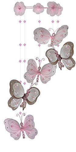 - The Butterfly Grove Chloe Butterfly Nursery Mobile Hanging Nylon Layered Decor, Pink/Brown by The Butterfly Grove