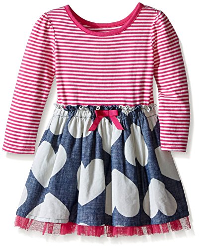 The Children's Place Baby Girls' Long Sleeve Knit to Chambray Dress