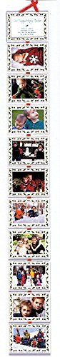 The Holiday Family Timeline is the perfect keepsake for a young family or grandparents. The Family Holiday Timeline is a unique, space-saving way to display 10 years of annual 4x6 holiday photographs. Each photo card has a space on the back to record the year and memories- your timeline will become a conversation piece and true keepsake as you fill each year. It is so fun to watch your family grow and change, grandparents will love to have one as well. Space-saving, your timeline can hang on narrow doors and walls and when the holidays are over, it accordian folds and goes back into its red keepsake box with magnetic closure. For families just getting started, you may tie-up the empty panels and let them down as the years go by.