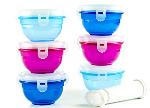 - 高級BPAフリーの素材から設計された食品より新鮮保持し、気密容器セット+ポンプ: 4ポイントのロック蓋、小さな食品ポットは、約。ベビーフードを格納されときに汚染やシールで臭いからの保護、加熱またはアウトされているので、他のベビーフードコンテナをお好きな新鮮さを保つポンプ付属します。使用するを超えるlid-valve空気でもアウトした場合には、しっかり時間の食事、スナックの品質、押しつぶさない場合が低下します。野菜スチーマー」や「ポップコーンメーカーとしてしでください。