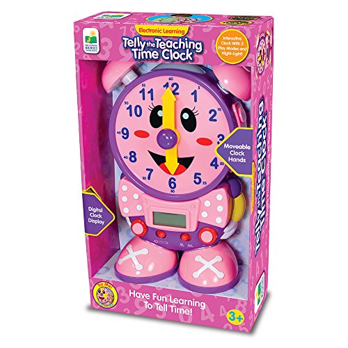 The Learning Journey Telly The Teaching Time Clock will help your child learn how to tell both analogue and digital time using two quiz modes.Made for kids aged 3 to 4 years old, this device will make the process fun and exciting.In the learning mode, Telly teaches time and updates his large LCD screen in 5-minute increments when his hands are moved.In the quiz mode, Telly will ask your child to move the hands on his face to match the time displayed on the screen.The Learning Journey clock is a real working clock.It also functions as a night light.