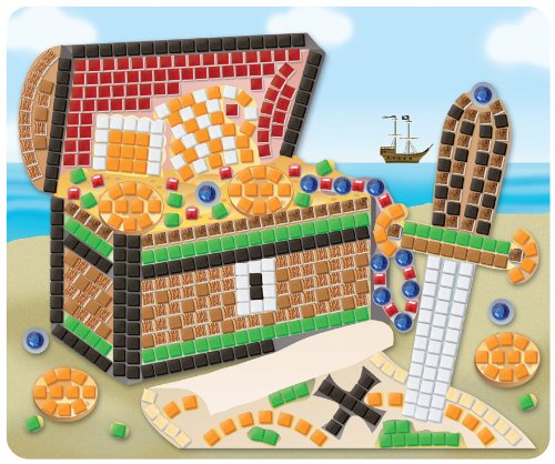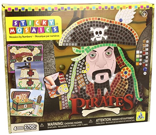 Ahoy Matey.Create memorable keepsake pieces of art for your firnds and family with this Pirate themed Sticky Mosaic kit.Decorate-by-number with this simple and easy to use craft.Have fun with Sticky Mosaics when you create 4 great designs.Adorn them with jewels and encrust them with gems because this kit comes with hundreds of foam stickers.Easy to use and fun for kids of all ages - simply follow a numbered pattern to decorate every angle of this pretty box.Sticky Mosaic Pirate kits are wonderful gifts for parents, grand parents, family and friends.