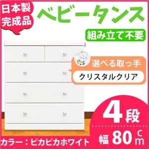 取っ手が選べるハイチェスト/タンス 80cm幅 4段(本体:ピカピカホワイト 取っ手:クリスタルクリア×全8個) 【日本製】【完成品】