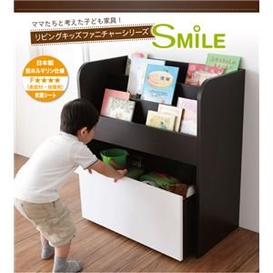 おもちゃ箱【SMILE】ホワイト リビングキッズファニチャーシリーズ【SMILE】スマイル おもちゃ箱付き絵本ラック