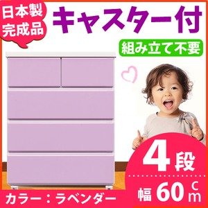 キャスター付きチェスト/タンス収納 幅60cm 4段 ラベンダー 【日本製】【完成品】