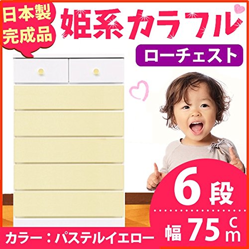 姫系カラフルローチェスト/タンス収納家具 幅75cm 6段 (カラー:パステルイエロー) 【日本製/完成品】