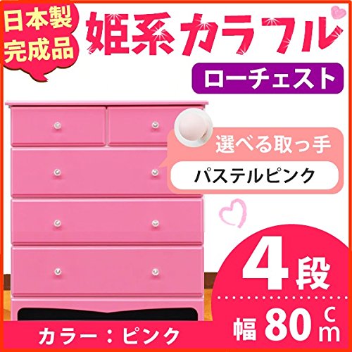 姫系カラフルローチェスト/タンス収納家具 幅80cm 4段 (カラー:ピンク 取っ手:パステルピンク×全8個) 【日本製/完成品】