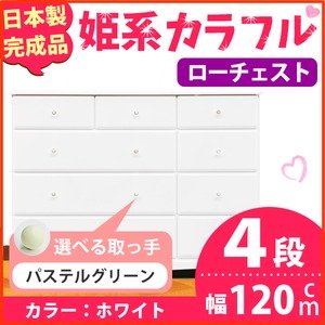 姫系カラフルローチェスト/タンス収納家具 幅120cm 4段 (カラー:ホワイト 取っ手:パステルグリーン×全12個) 【日本製/完成品】【代引不可】