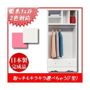 姫系オープン収納/ワードローブ 幅78cm ラバーズF(カラー:ビビットピンク 取っ手:クリスタルクリア×全2個) 【日本製/完成品】【代引不可】