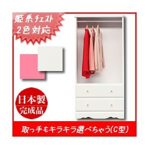 姫系オープン収納/ワードローブ 幅78cm ラバーズC(カラー:ビビットピンク 取っ手:クリスタルクリア×全4個) 【日本製/完成品】【代引不可】