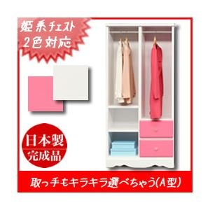 姫系オープン収納/ワードローブ 幅78cm ラバーズA(カラー:ビビットピンク 取っ手:ハートピンク×全2個) 【日本製/完成品】【代引不可】