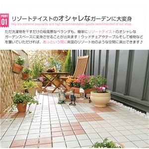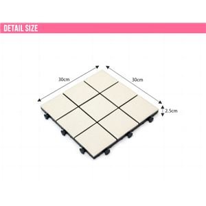 - 本商品はお取り寄せ商品のため、稀にご注文入れ違い等により欠品・遅延となる場合がございます。誠に恐れ入りますが、何卒ご了承ください。 また、以下の場合には追加送料がかかる場合がございます。 ・大型商品の複数購入時 ・同梱区分が異なる商品の複数購入時 【出荷目安】:7 - 11営業日 ※土日・祝除く 】:大型商品 1枚あたり)幅30 X 奥行30 X 厚さ2.5cm 10枚で約0.9平米の面積に敷設できます。 1枚あたり1.7kg程度でございます。 【素材】上部/陶器タイル ベース部/ポリエチレン・EVA樹脂 【質感】 タイルはスベスベした質感になります 【生産地】中国 【特記事項】 画像のカラー・サイズとは異なる場合がございます。商品名のカラー・サイズをご確認下さい。