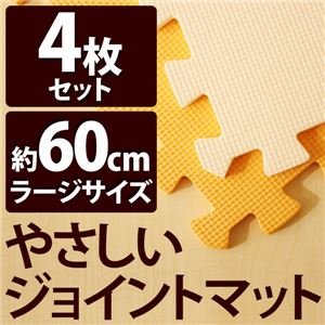 やさしいジョイントマット 4枚入 ラージサイズ(60cm×60cm) オレンジ×ベージュ 〔大判 クッションマット 床暖房対応 赤ちゃんマット〕
