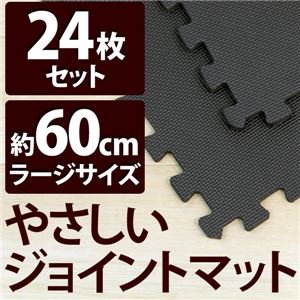 やさしいジョイントマット 約4.5畳(24枚入)本体 ラージサイズ(60cm×60cm) ブラック(黒)単色 〔大判 クッションマット 床暖房対応 赤ちゃんマット〕