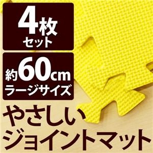やさしいジョイントマット 4枚入 ラージサイズ(60cm×60cm) イエロー(黄色)単色 〔大判 クッションマット 床暖房対応 赤ちゃんマット〕