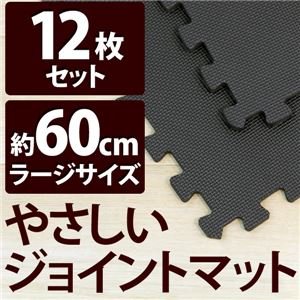 やさしいジョイントマット 12枚入 ラージサイズ(60cm×60cm) ブラック(黒)単色 〔大判 クッションマット 床暖房対応 赤ちゃんマット〕