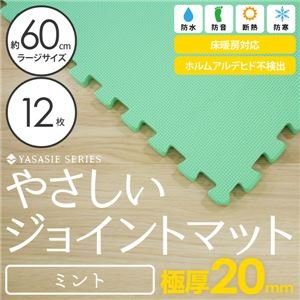 極厚ジョイントマット 2cm 大判 【やさしいジョイントマット 極厚 12枚入 本体 ラージサイズ(60cm×60cm) ミント(ライトグリーン) 】 床暖房対応 赤ちゃんマット