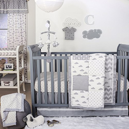 Grey Cloud and Geometric Patch 4 Piece Baby Crib Bedding Set by The Peanut Shell