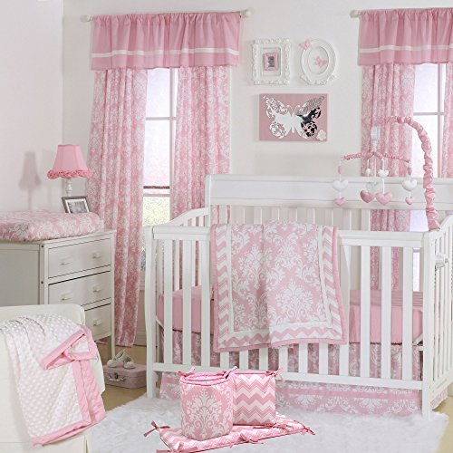 Pink Damask Print 5 Piece Baby Crib Bedding Set with Bumper by The Peanut Shell by The Peanut Shell
