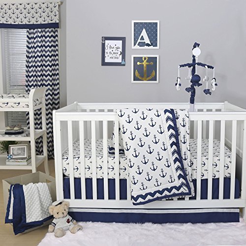 Anchor Nautical 3 Piece Baby Crib Bedding Set in Navy Blue by The Peanut Shell by The Peanut Shell