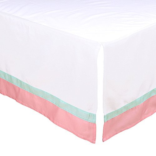 100% cotton sateen fabrics highlight this premium quality patchwork of coral pink medallion and mint green confetti dots; 3 piece set includes reversible quilt, fitted sheet, and tailored dust ruffle; individual components of this set are also available for purchase separately;Generously sized at 44 by 37 inches, the 100% cotton quilt will find a host of uses in and out of the nursery, inside and outside the home; perfect for tummy-time;Fitted crib sheet is designed to fit a standard sized crib with a mattress measuring 52 by 28 inches; all-around elastic will assure that the sheet fits safely and securely every time;Tailored crib dust ruffle from The Peanut Shell is crisp white accented with mint green and coral pink;The Peanut Shell, through this mix and match collection, offers a host of coordinating items for your nursery, including: window treatments, crib rail guards, blankets, alternate sheets, and changing pad covers