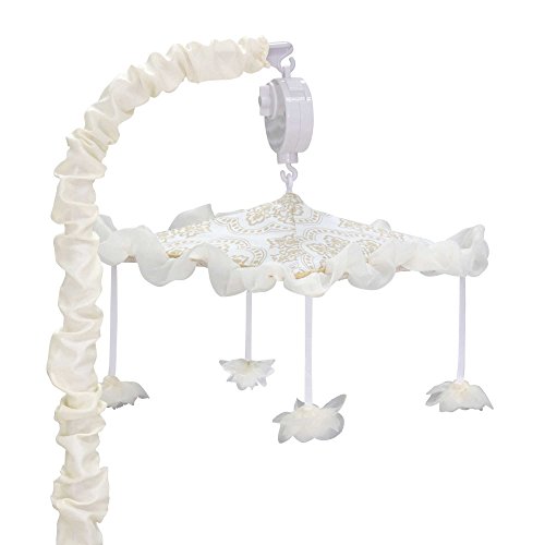 Features delicate white chiffon rosette hangings and fabrics that perfectly complement the Juliette crib bedding set;Plays Brahm's Lullaby to soothe your baby girl to sleep;Encourages visual, auditory, and motor development;Easy assembly instructions included, no batteries necessary;Coordinates with the Juliette crib bedding collection by The Peanut Shell