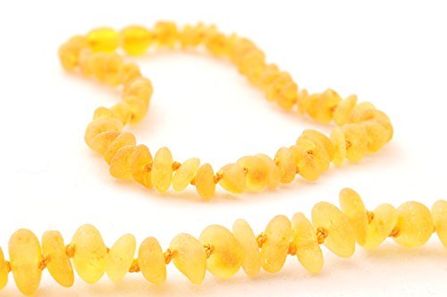 Our amber teething necklace come straight to you from Lithuania, their country of origin. The beads on the necklaces are made of amber. Amber jewelry has a natural medicine capabilities such as anti inflammatory and analgesic substance called succinic acid which is released by the beads in response to the warmth of the child's body and absorbed through the skin, it is a great alternative to drugs. This is how it's said to be helpful for soothing red inflamed cheeks and gums, it has become popular in many other parts of the world. It has positive effects for the nervous system and the heart. Every necklace is hand-crafted by Baltic Amber specialists who have generations of experience in preparing Baltic Amber bead until it reaches ultimate perfection. You will never find any piece of fake amber in our inventory or on our website.