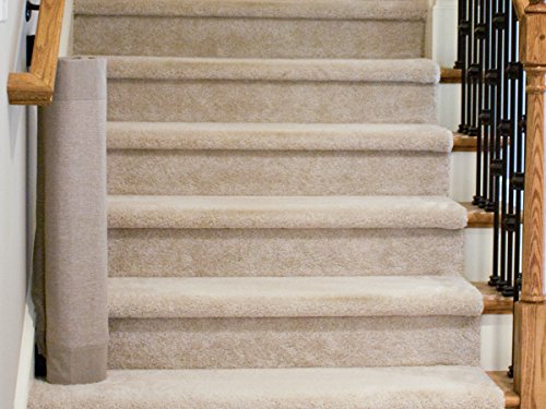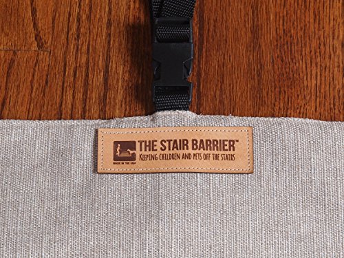 Easy installation but some drilling is required;Designed specifically for the bottom of the stairs, fits openings 36'' to 43'';Attractive-complements the home rather than detracts;The Stair Barrier basic welcomes guests in style with it's high quality build and class 1 upholstery fabric;One of the best features (similar to a retractable gate) of the product is that it very easily rolls to the side and out of the way when you don't need it;One of the best features (similar to a retractable gate) of the product is that it rolls to the side and out of the way when you don't need it;Designed specifically for the bottom of the stairs and? available in two sizes, all stair barriers are 32 inches tall;Made with high quality class 1 upholstery grade?fabric, heavy duty polypropylene webbing, dual sided release buckles and internal rigid plastic struts