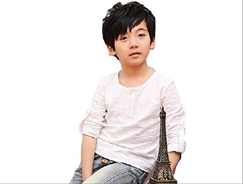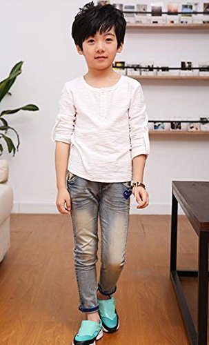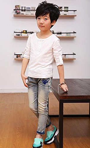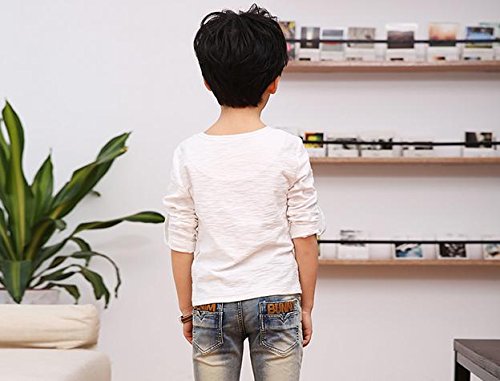 キッズ 春秋 おしゃれ ロンT ボーイズ 前ボタン 袖まくり可 白 緑 黒 茶 (120cm, 白)