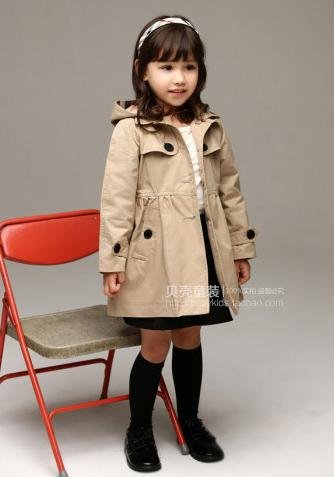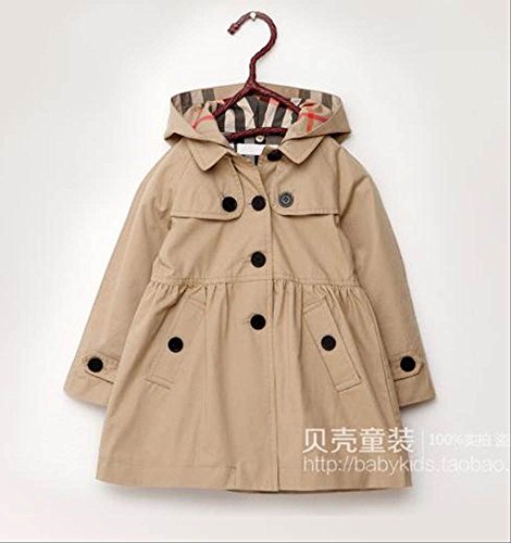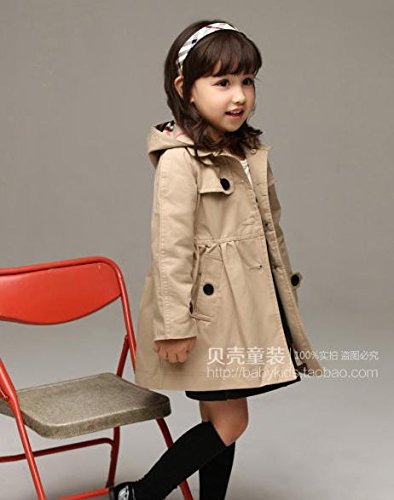 キッズ 春秋 おしゃれ トレンチコート フード付き 女の子 ベージュ 赤 (140cm, ベージュ)
