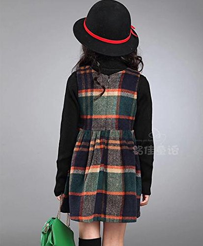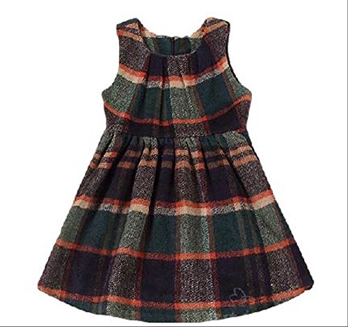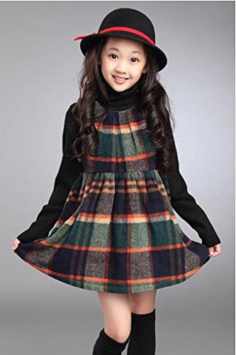 子ども服 おしゃれ ワンピース 女の子 チェック柄 赤 緑 (140cm, 緑チェック)