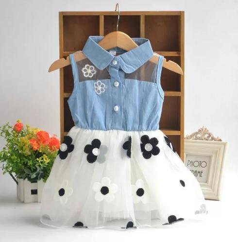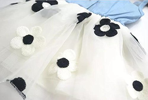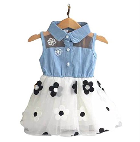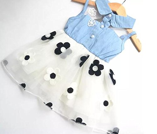キッズ 夏 デニム スカート ドレス ガーゼ プリント 女の子 おしゃれ ピンク 白 (100cm, 白)