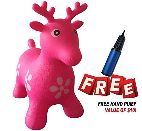 SUESPORT Inflatable Bouncer Seat Reindeer Pump Included Easy to Inflate Space Hopper Ride-on Bouncy Animal Hopper CPSIA Pink [並行輸入品]