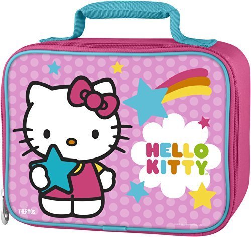 For over 100 years, Thermos has created unique products fueled by hotter, cooler and fresher thinking. This commitment continues with an expanding range of innovative, fashionable lunch kits that get your child's healthy lunch to school and back in style. Pack their lunch in Thermos each day instead of using disposables: you'll reduce waste and save your family money. Now that's fresh thinking. This Hello Kitty Soft Lunch Kit measures 7-1/2 by 9-1/2 by 3-1/2-inch, with a zipper lid and a padded carrying handle. This lunch kit is 100 Percent PVC free with PEVA lining and features superior quality closed cell polyethylene foam insulation. Intended for children five years and older. Wipe clean with a damp cloth.