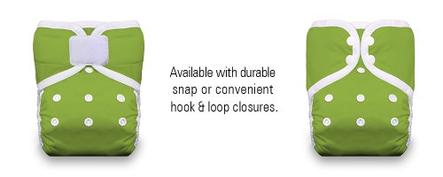A two-piece diapering system combining 8 layers of absorbent insert and a waterproof pocket diaper;One size diaper provides a customizable fit for most babies from 8 to 40 pounds;Newborn insert - 3 layers of microfiber terry; Full size insert - 5 layers of hemp cotton;No need to remove soiled inserts; they agitate out in the wash;Available with Thirsties new hook and loop or new snap configuration with two rows of snaps