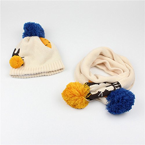 Three sheep ニット帽 毛糸 マフラー 2点セット ウサギ柄 かわいい 赤ちゃん キッズ ガールズ ボーイズ 秋冬 防寒 ポンポン 暖かい 防風