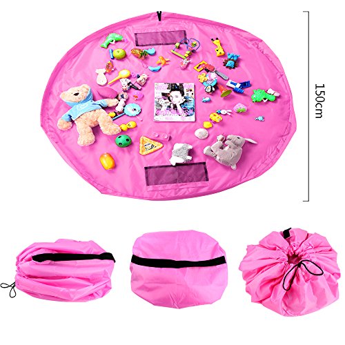 OJA お片づけ おもちゃ 収納袋 持ち運び 超大キッズマット 直径150cm 防水シート 玩具収納袋 女の子(150cm, ピンク)