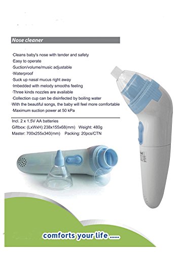 使用説明: すべての赤ちゃんの人生の最初の年の間に彼らの自然な開発の一環として過剰な粘液を生成するが、彼らは鼻をかむ方法を知るには若すぎます。したがって、頻繁に感染症、呼吸困難、その他の健康の合併症を避けるために (できればクリーナーの鼻) を持つ厳格な衛生を維持するために絶対に必要です。この鼻吸引器のクリーニングはあなたの赤ん坊および幼児の世話を助けます。