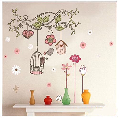 - Birdcage Colorful Flower Vine Branches Removable vinyl art wall decals murals home Decal decor wall stickers For Nursery Boys and Girls Room Children's Room