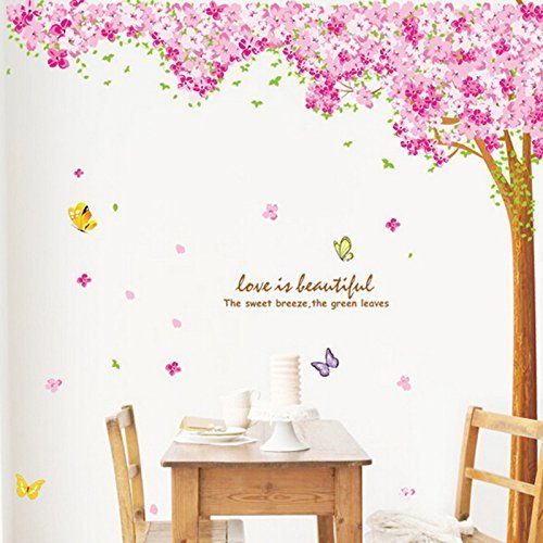 Large Pink Sakura Flower Cherry Blossom Tree Wall Sticker Decals PVC Removable Wall Decal for Nursery Girls and Boys Children's Bedroom