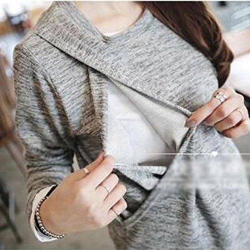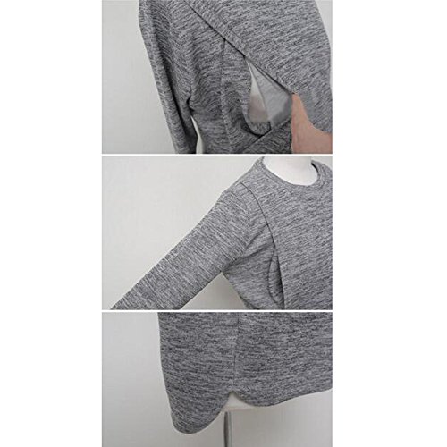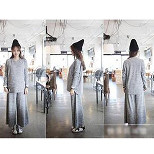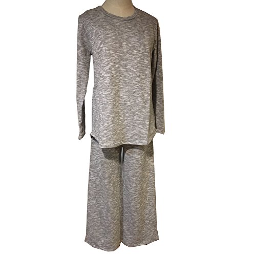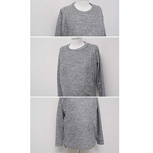 (ティアナ23)Tianna23 マタニティ 授乳 シンプルデザイン セットアップ 長袖トップス&ガウチョパンツ グレー XL