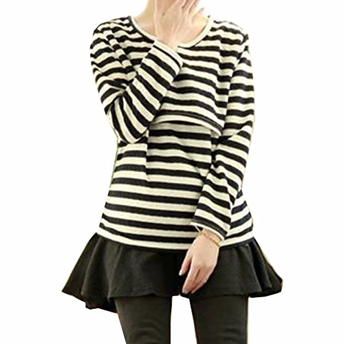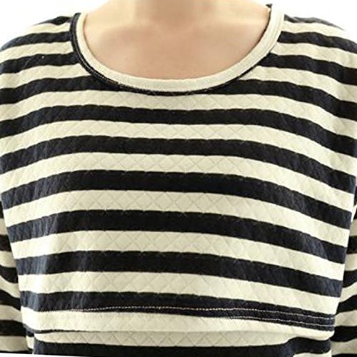 (ティアナ23)Tianna23 マタニティ 授乳口付 クルーネック 長袖 カットソー ブラックXホワイト XL