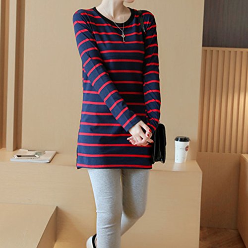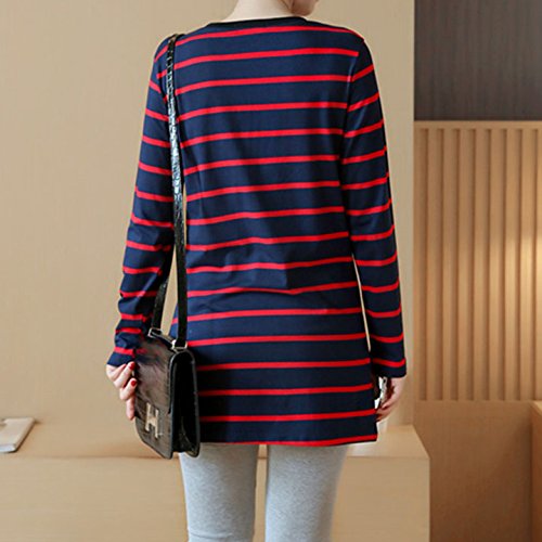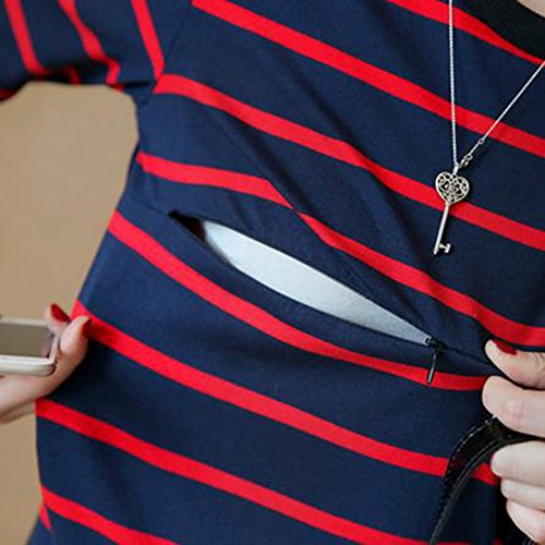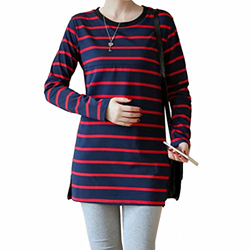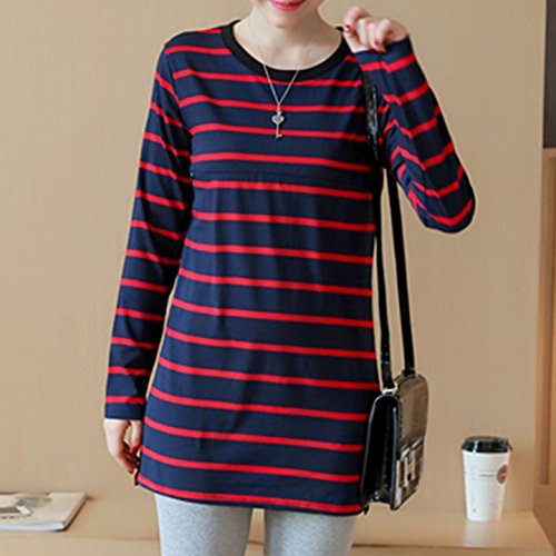 (ティアナ23)Tianna23 マタニティ 授乳口付 長袖 カットソー ボーダー柄 レッドXネイビー XL