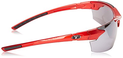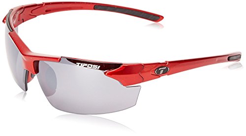 Developed to exceed the expectations of every athlete, the Tifosi Jet FC Eyewear combines a sleek, aggressive design with full coverage protection from the sun. Virtually bombproof Grilamid TR-90 frame and polycarbonate, decentered lenses provide superior optical clarity in any activity. Tifosi's propriety Glare Guard lens coating prevents unnecessary glare and reduces eyestrain and fatigue. Adjustable hydrophilic rubber ear and nose pads give a close, slip-free fit while increasing comfort and performance. Grilamid TR-90 NZZ frame is made from homopolyamide nylon and features an extremely high alternative bending strength, low density and high resistance to chemical and UV damage Polycarbonate decentered lenses flex instead of shattering upon impact and eliminate visual distortion and magnification for exceptional optical clarity Glare Guard lens coating reduces glare and decreases eye fatigue while allowing the wearer to distinguish terrain breaks Hydrophilic rubber adjustable temples and nose pads increase grip when in contact with sweat, resist aging and UV breakdown, and allow for a customizable, comfortable fit 100% UVA/UVB protection Fits small, medium and large faces Includes hard shell zippered case and cleaning bag Gloss Black frame comes with a Smoke w/ Glare Guard lens (15.4% light transmission) Metallic Red frame comes with a Smoke w/ Glare Guard lens (15.4% light transmission) Tifosi is an Italian word meaning enthusiast or fan. Founded under the basic principle that quality eyewear should be available to the masses, Tifosi Optics has been designing and distributing technologically-advanced, value oriented sunglasses for sports enthusiasts since 2003. Whether it's cycling, golf, running or fishing, Tifosi has you covered with a range of lens technologies and sleek, lightweight frame styles. Tifosi Optics lenses are made from polycarbonate material and always offer 100 percent UVA/UVB protection.