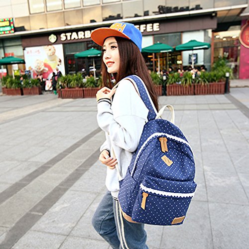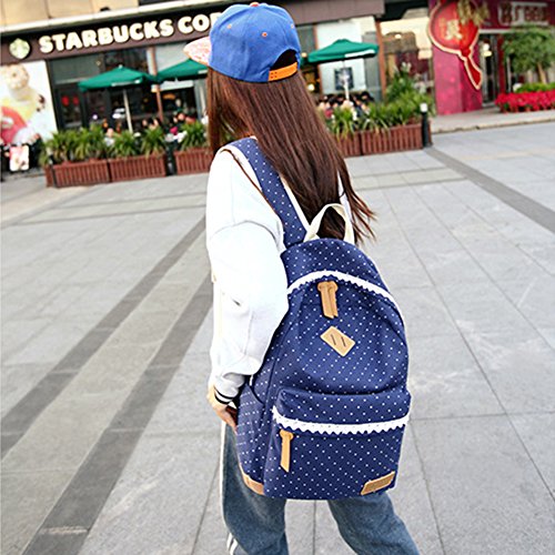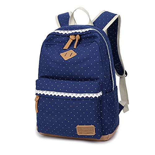 TimeCollect おしゃれなリュックバッグ キャンバス,レースのショルダー バッグ,学生 女子 社員 通学 通勤 ピクニック 旅行 スポーツ(42 x 33 x 14cm) (ブルー)